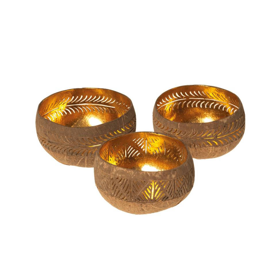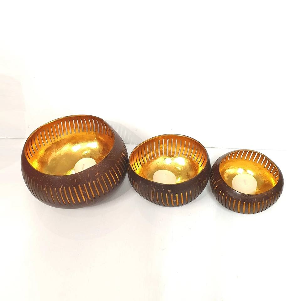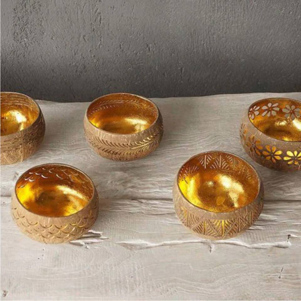 New Design Eco-Friendly Carved Coconut Shell Gold Lacquered Candle Holder Bowl Tea Light Decoration Handmade Christmas Vietnam