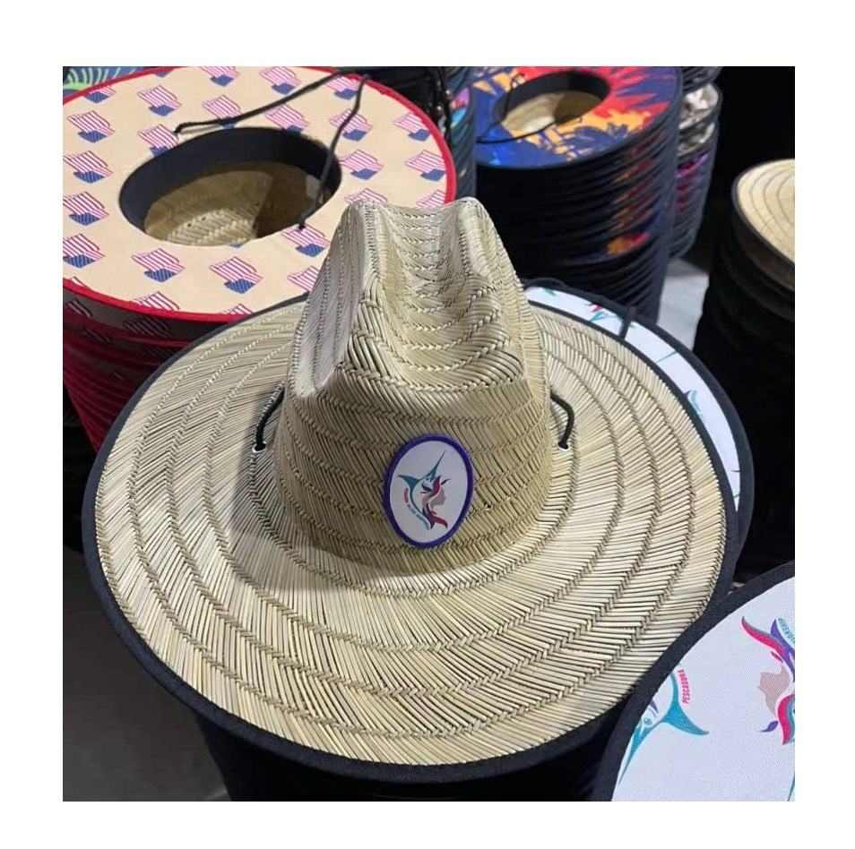 New Design Eco-Friendly Seagrass Straw Lifeguard Hat with Hand Drawn Printed for Business Beach Travel and Outdoor Activities