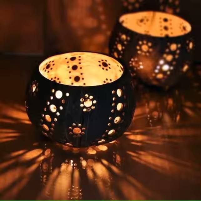 New Design Eco-friendly Best Selling Coconut Shell Tea Light Holder with Lacquer Inside Home Decor Handmade Christmas Vietnam