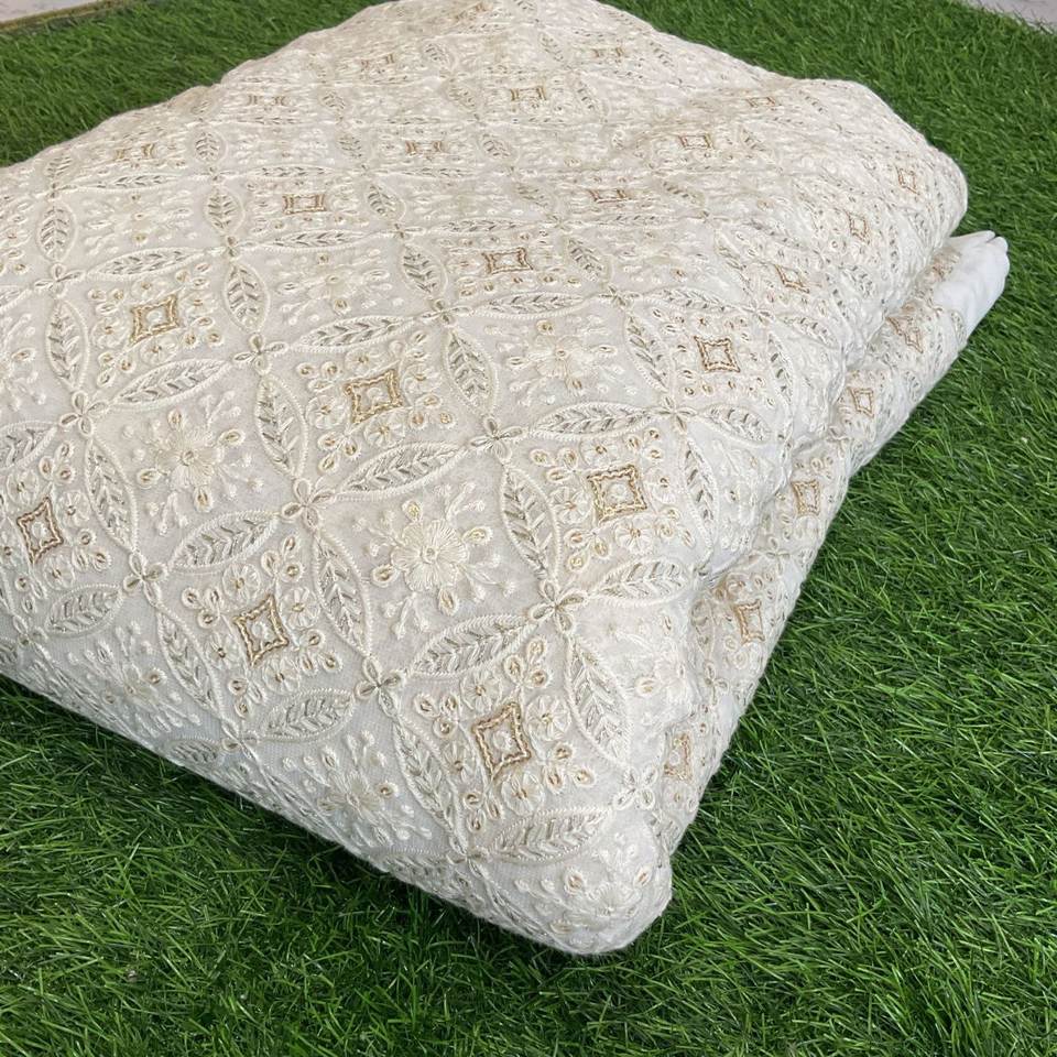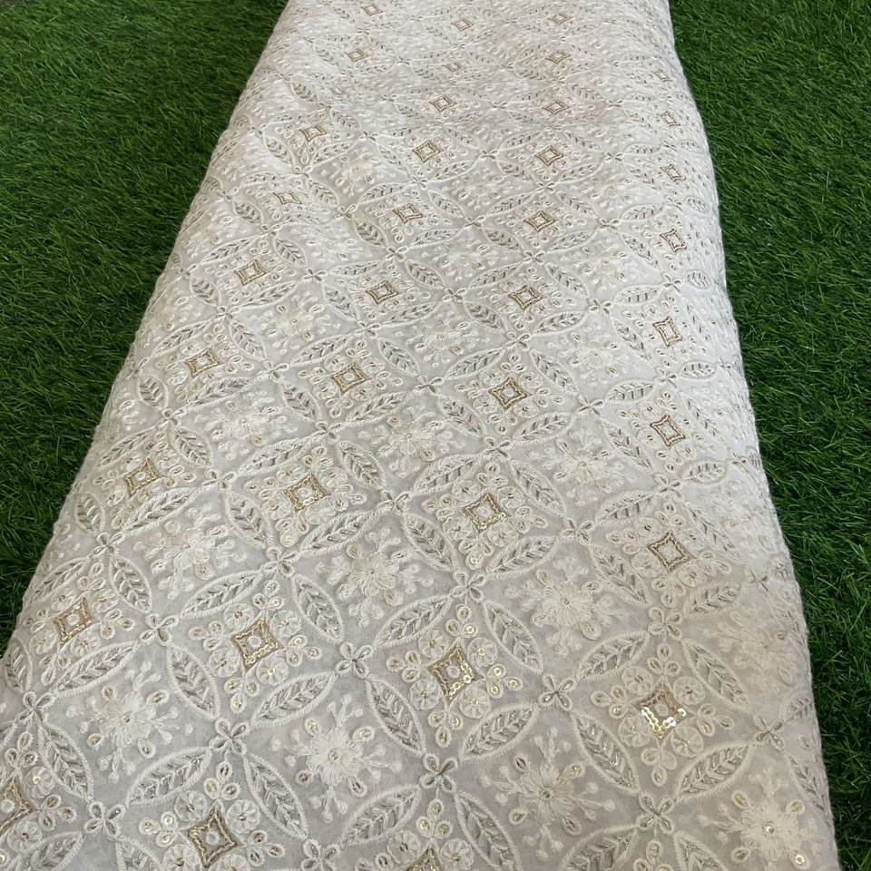 New Design Embroidery White Georgette Fabric Dyeable Floral Cotton Lace Embroidered Fabric for Dress Lehenga Sherwani