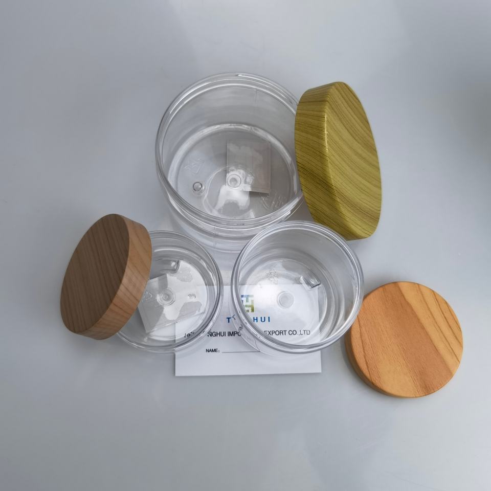 New Design Empty 30ml 50ml 100 ml 4 oz 200 ml 8 oz 250 ml 300 ml 500 ml Bamboo Wood Lid Round Frosted clear Plastic Pet Jars