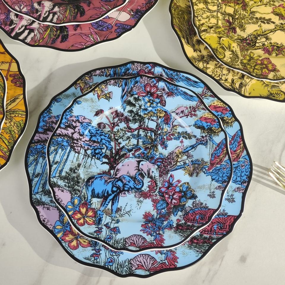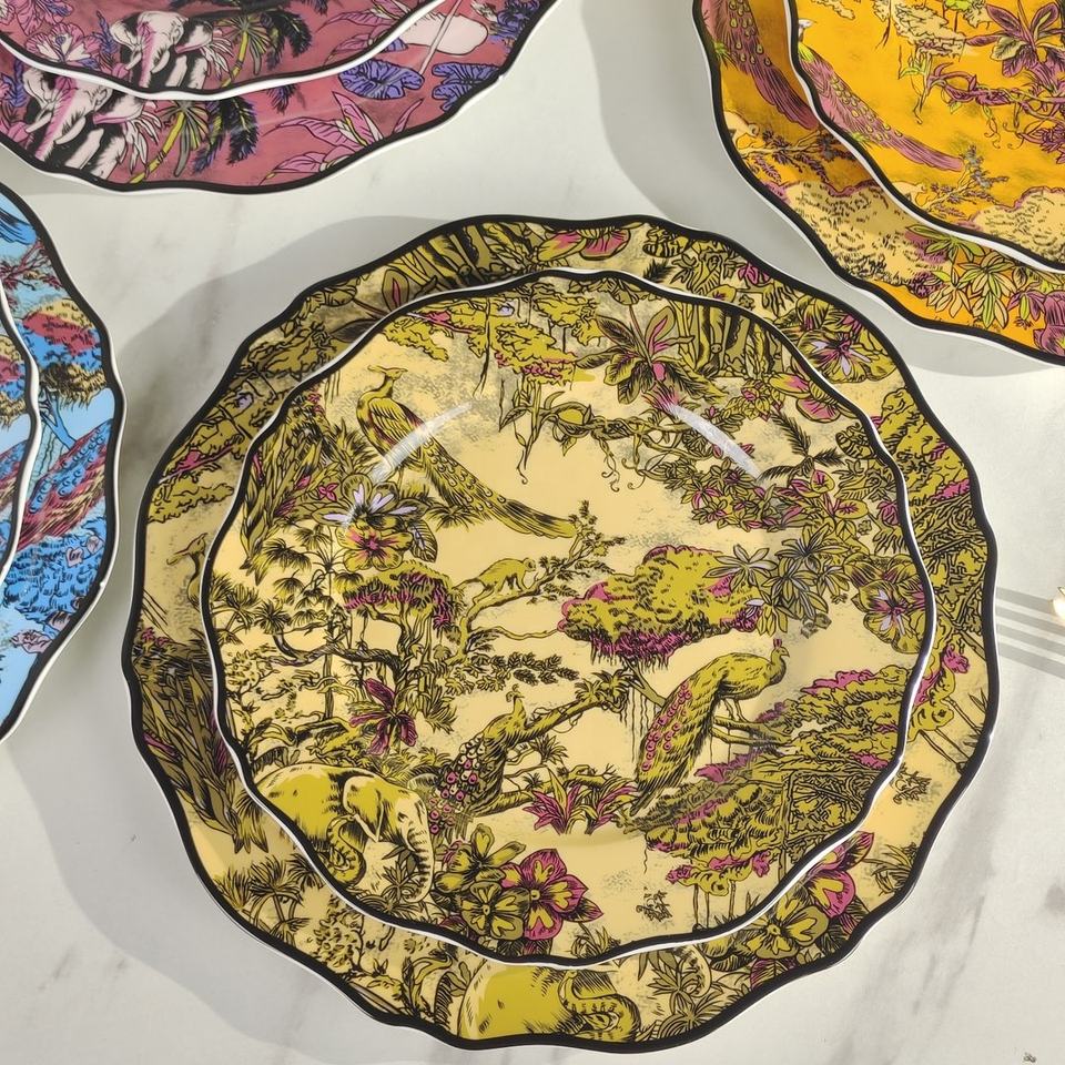 New Design European Luxury Animal Pattern Bone China Plate Set and Porcelain Charger Plate for home