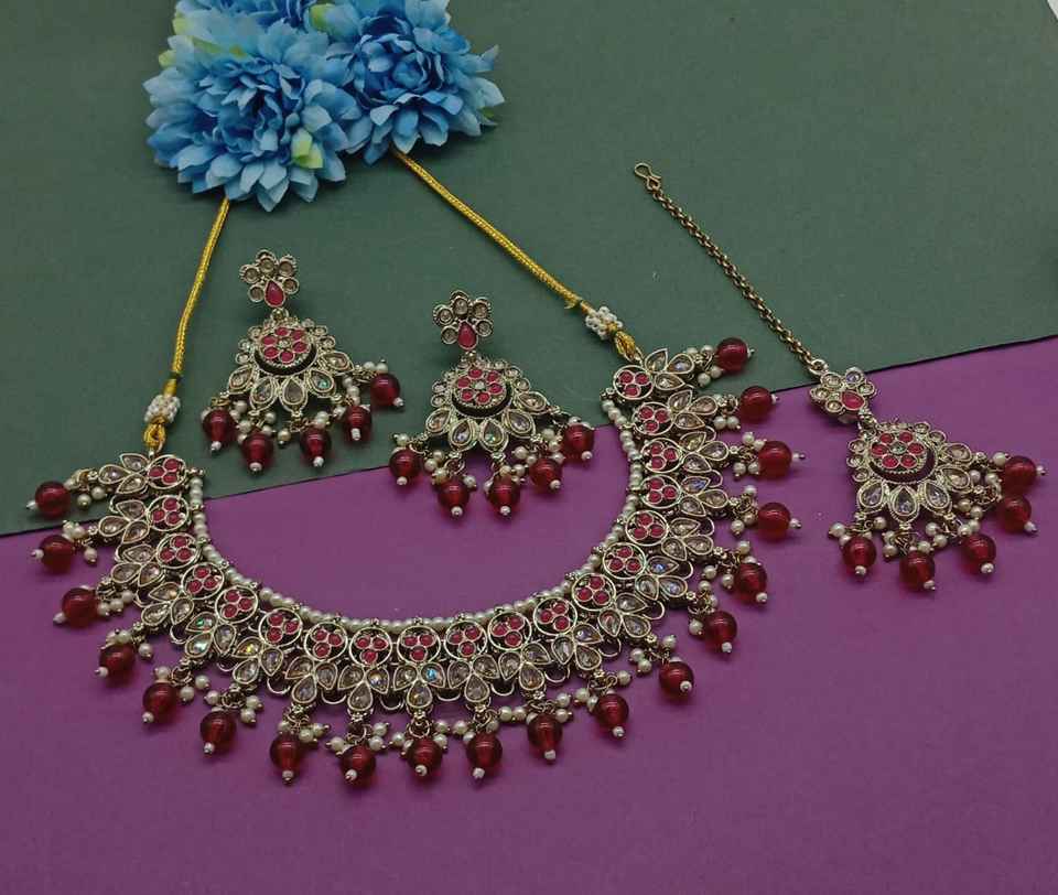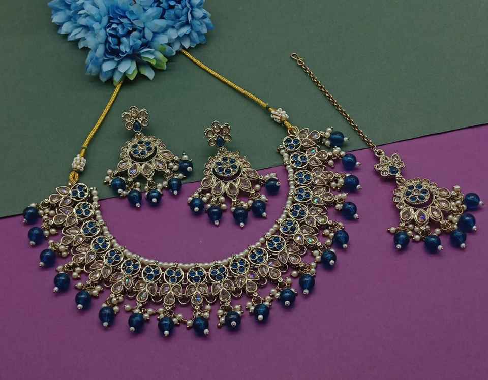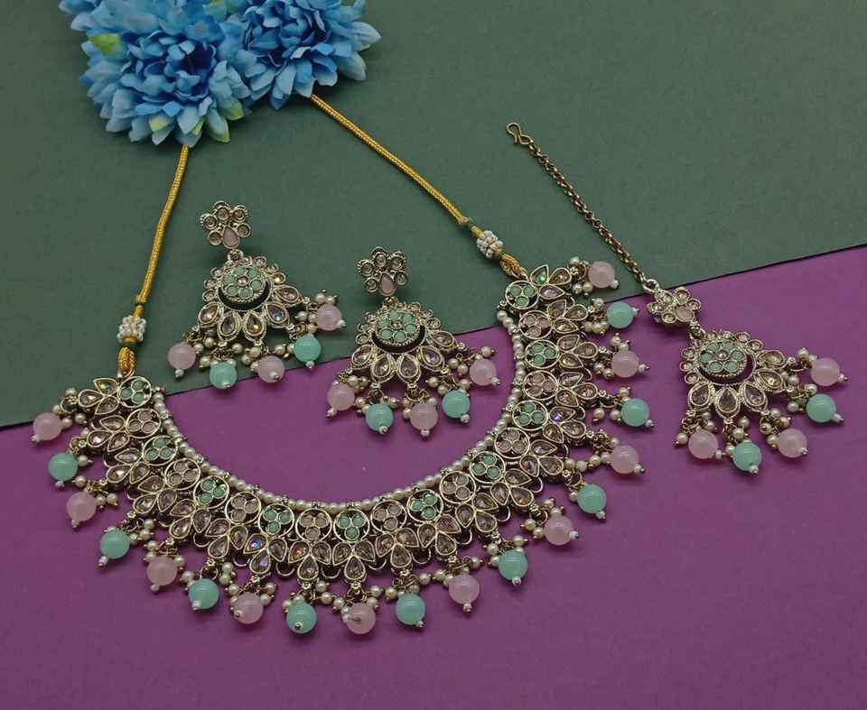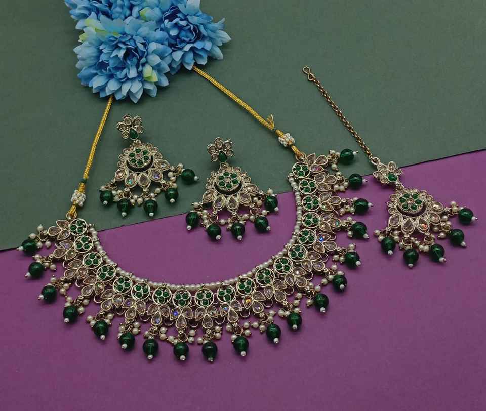 Type:Green Pearl & Kundan Studded Necklace Jewellery Set