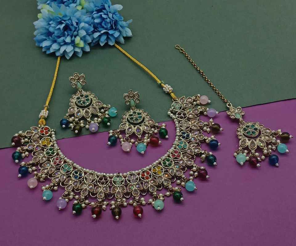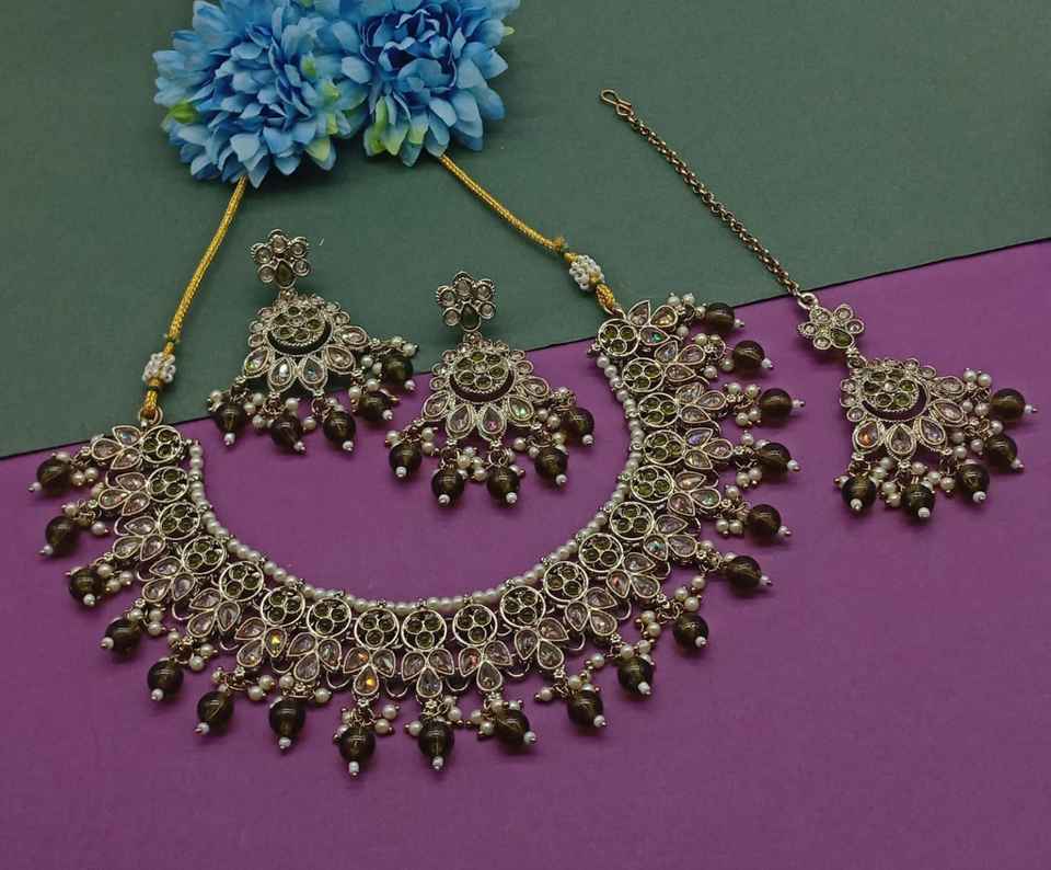 Type:Green Pearl & Kundan Studded Necklace Jewellery Set
