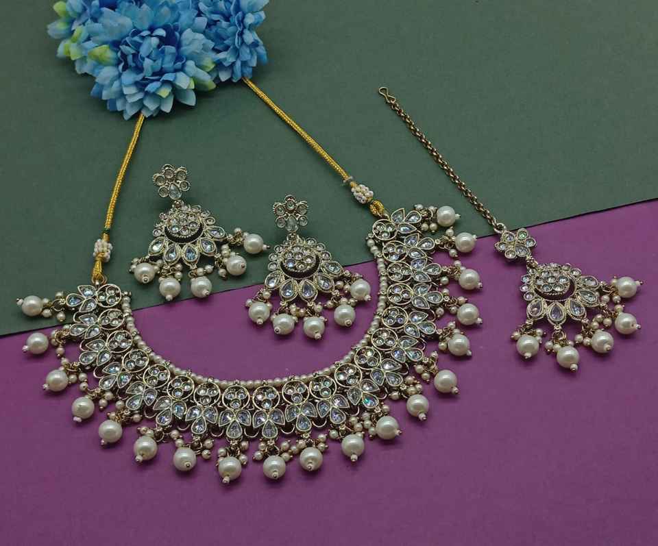 Product Name:Green Pearl & Kundan Studded Necklace Jewellery Set