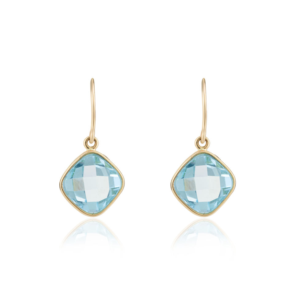Best Quality 100% Natural Blue Topaz Cushion Cut Drop Earrings December Birthstone 14k Solid Yellow Gold for Weddings Parties