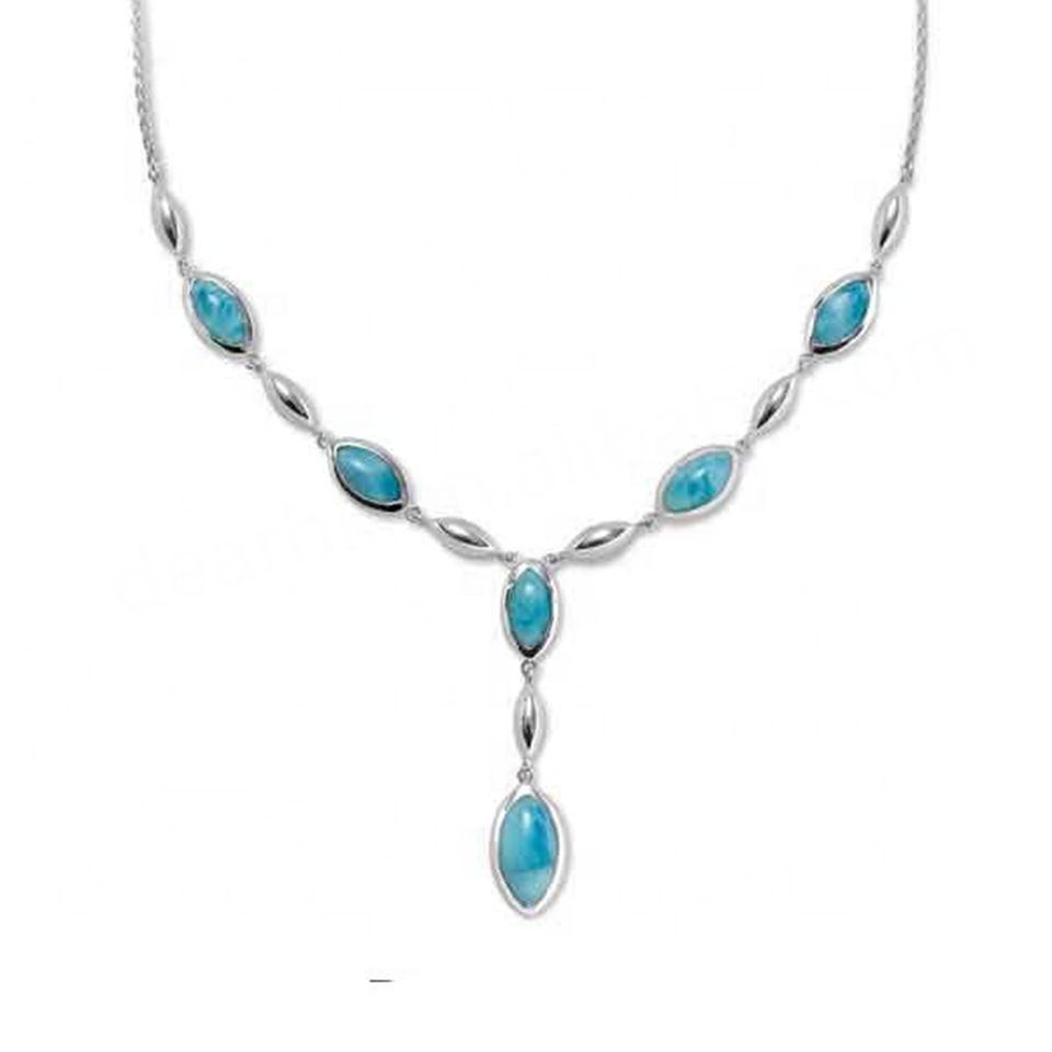 New Design Fashion Blue Natural Larimar Jewelry 925 Sterling Silver Larimar Gemstone Necklace for Gift
