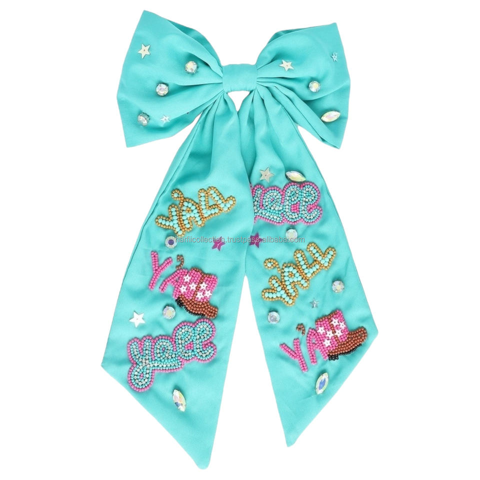 New Design Fashion Cute Girls Gameday Beaded Bow Hair Clip Wedding Elegant Stylish Hair Accessory Trendy Girls Beauty Clip