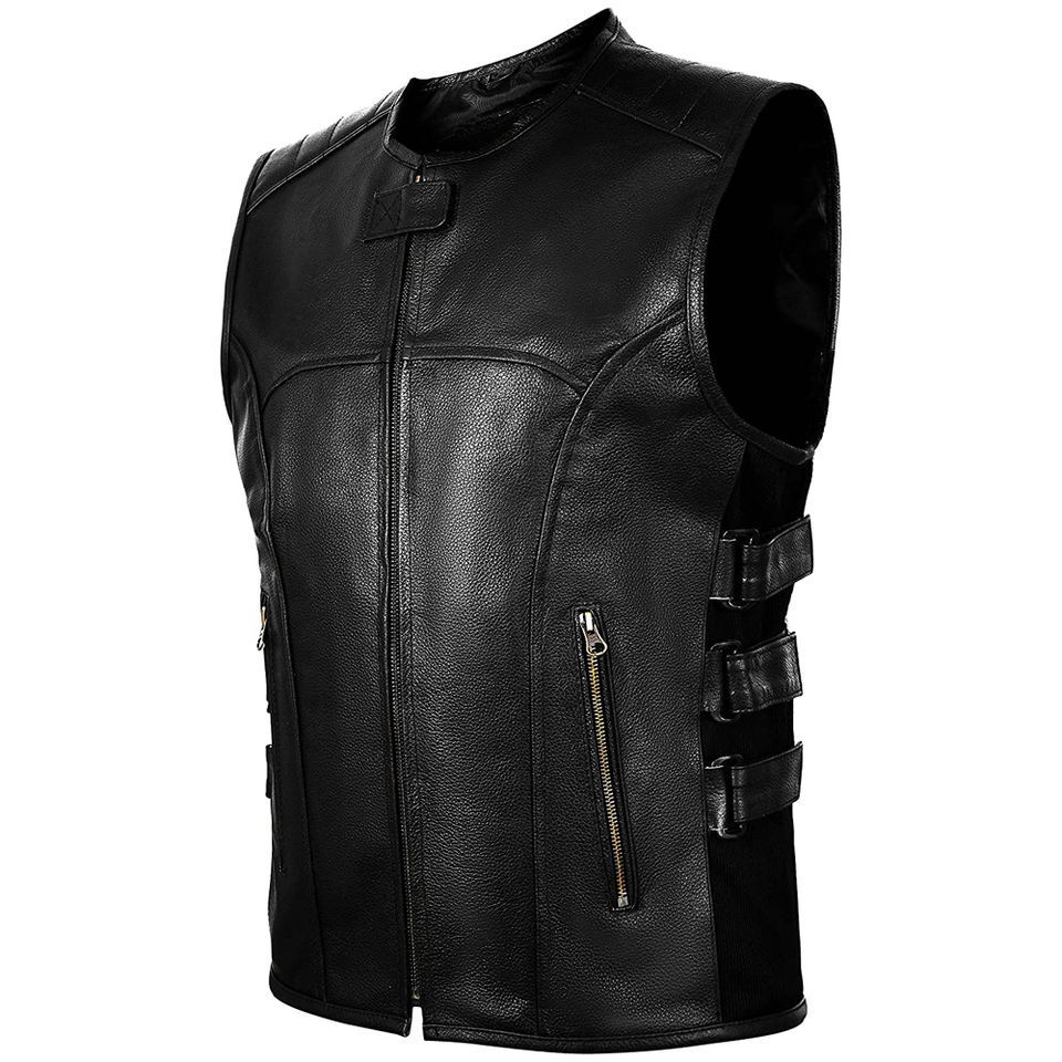 New Design Fashion Leather Men Genuine Short Motorbike Leather Sleeveless Jacket Men High Quality Motorcycle Leather Vest