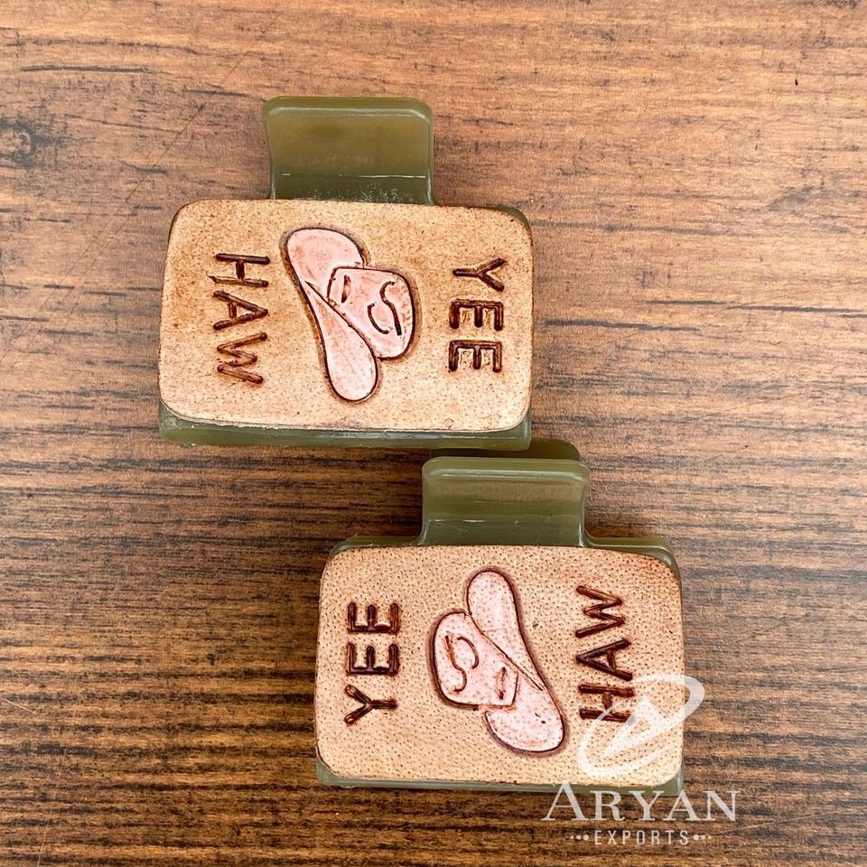Hand Tooled Engraved Leather Mini Hair Claw Clips