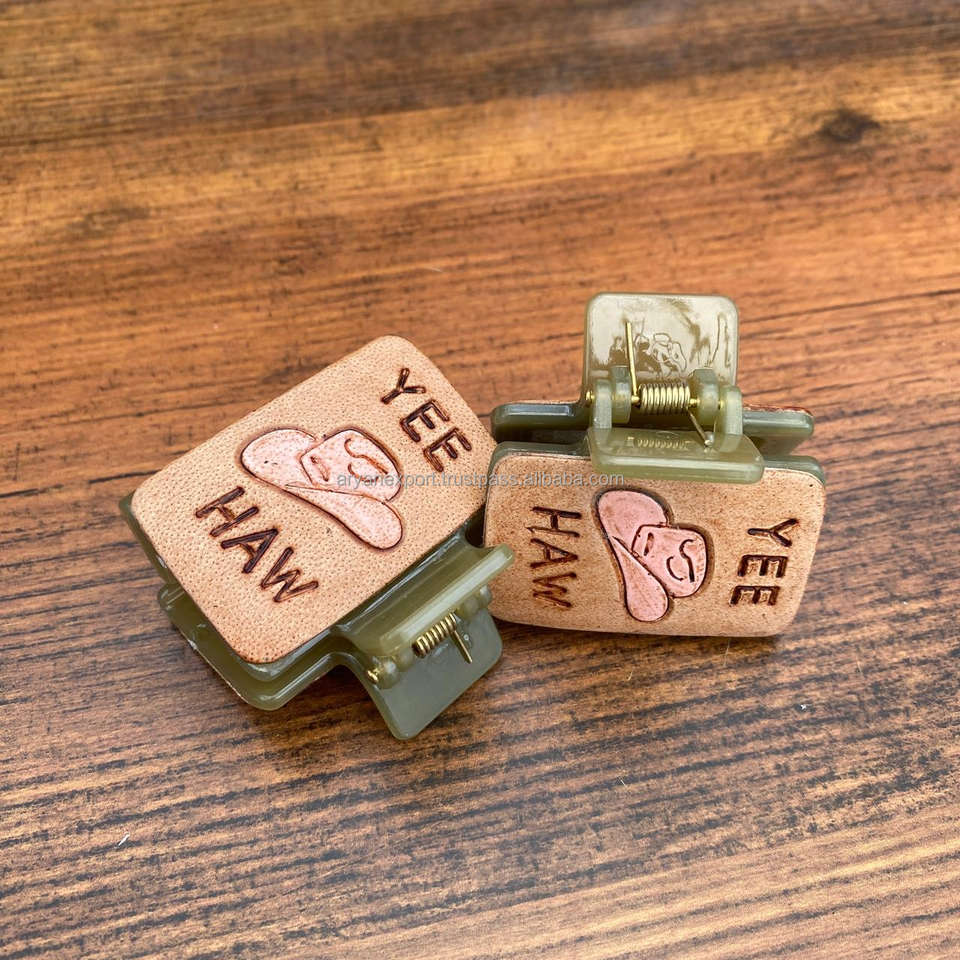 New Design Fashion Solid Colors Elegant Hand Tooled Engraved Leather Hair Claw Clips for Woman Girls Thick Hair for Daily Use