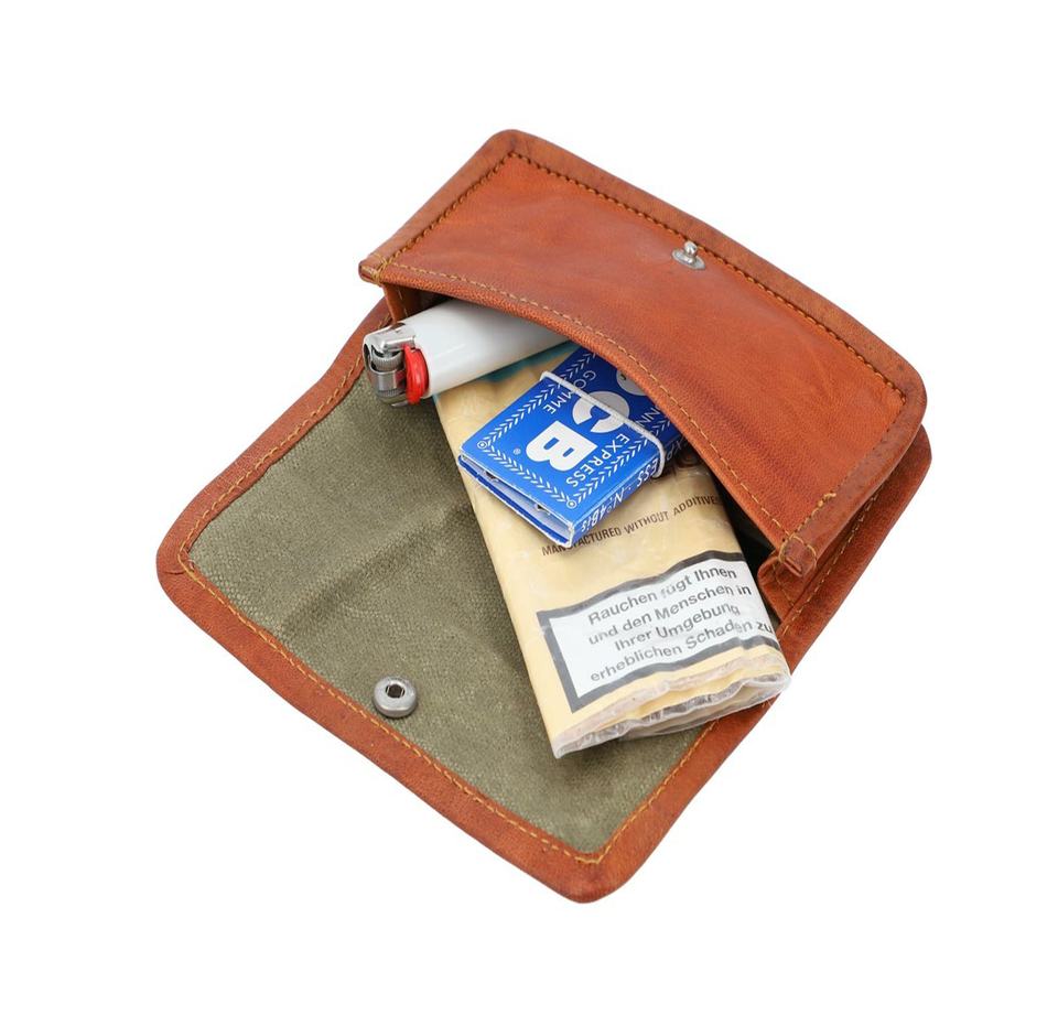 New Design Genuine Leather Vintage Tobacco Pouch Bag, Smoker Case with Zipper Pocket Magnetic Buttons, Wallet Style,Ladies Purse