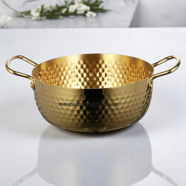 Product name:New Design Gold Hammered Stainless Steel Pot With Double Handles