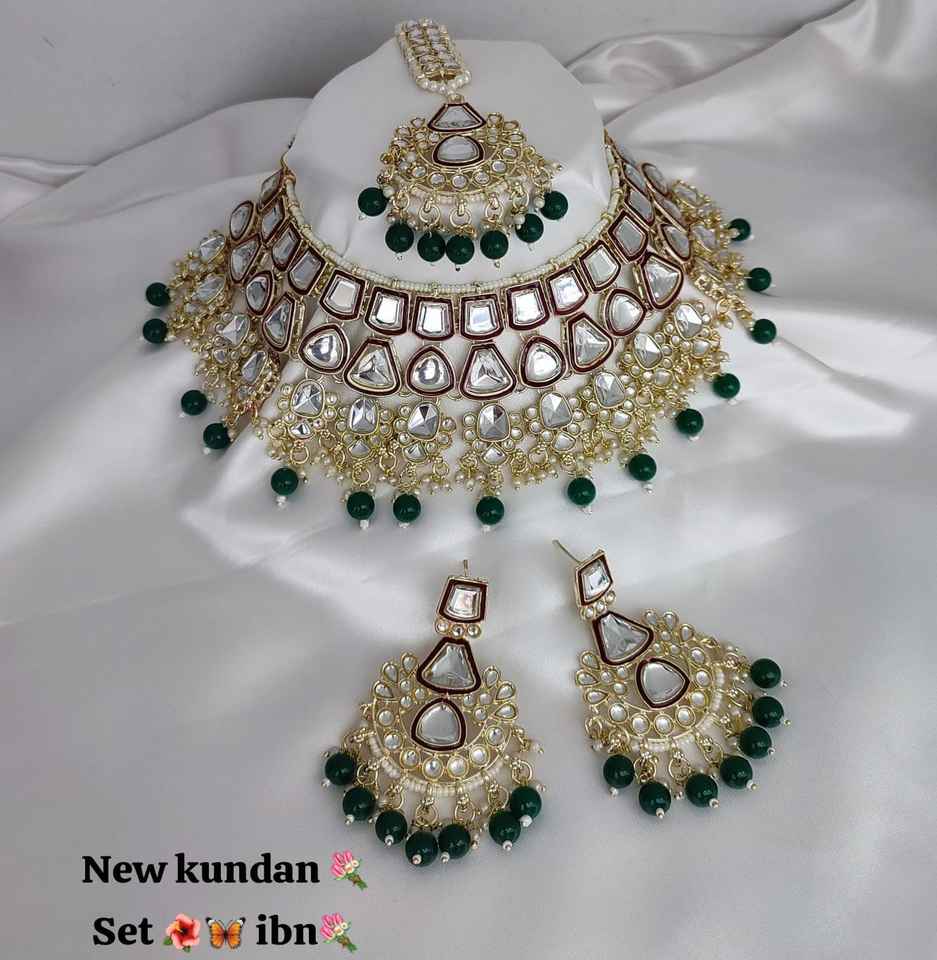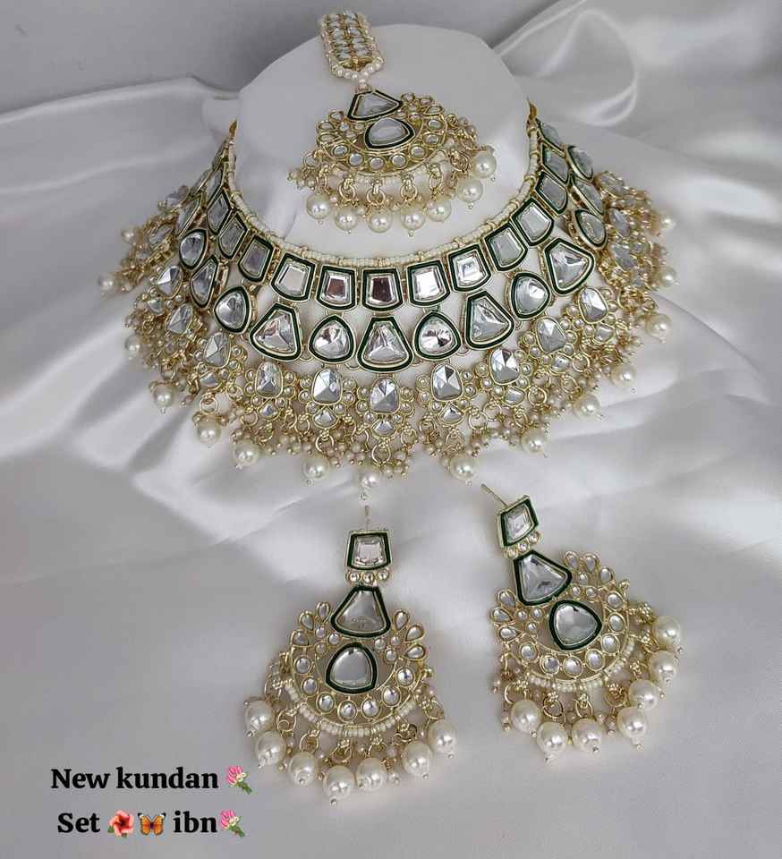 Green Pearl & Kundan Studded Necklace Jewellery Set