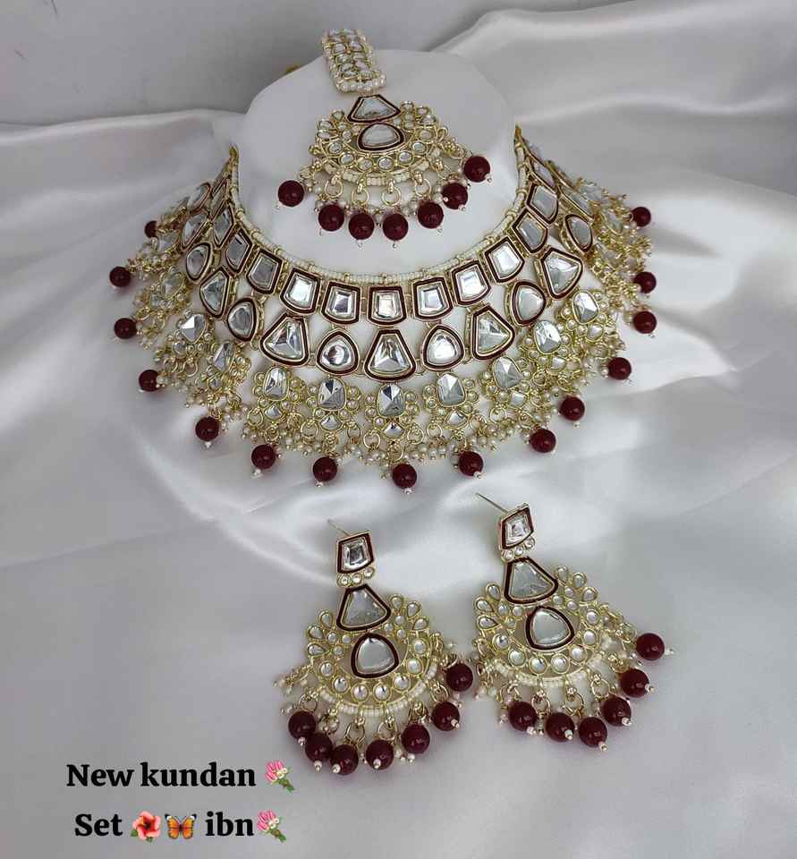 New Design Gold Plated Traditional Drop Pearl & Stone Studded Earring Mangtika Choker Necklace Set & Jewellery Set for Women