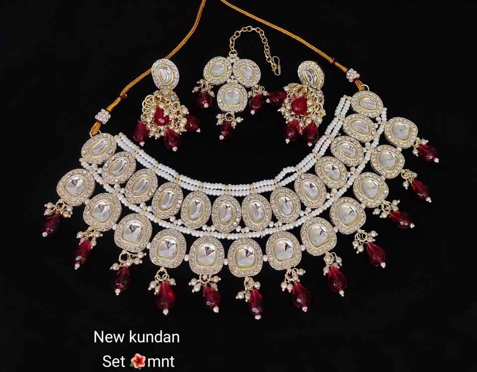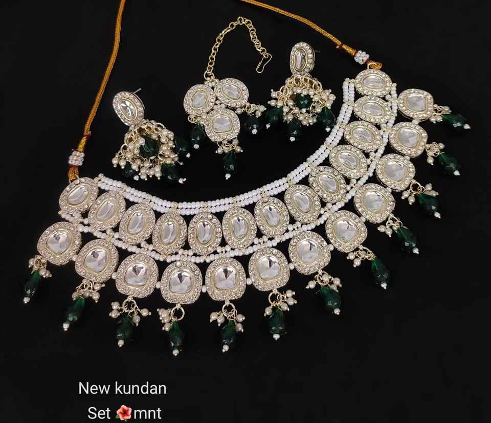 Type:Green Pearl & Kundan Studded Necklace Jewellery Set