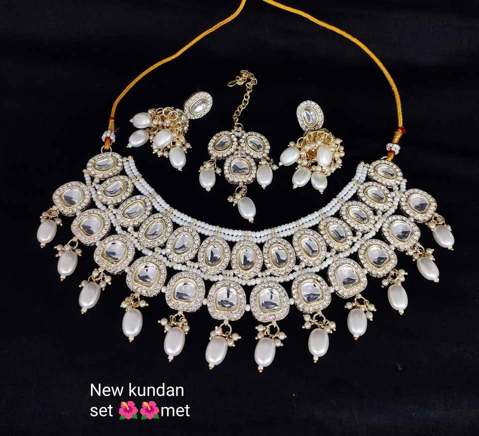 Product Name:Green Pearl & Kundan Studded Necklace Jewellery Set
