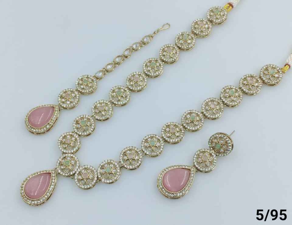 Type:Green Pearl & Kundan Studded Necklace Jewellery Set