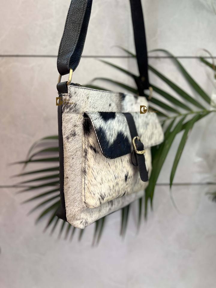 New Design Gypsy Boho Vintage Western Style Sling Bag Cowhide Leather Handmade with Hair Fur Multi-Use Candy Pattern Handbag