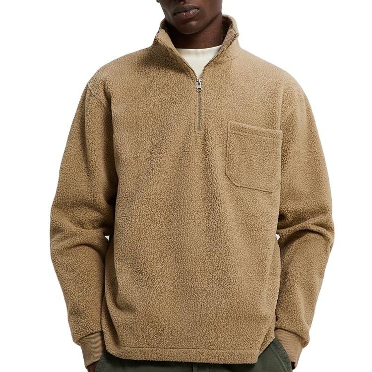 New Design Half Zipper Sweater Sherpa Warm Winter Heavy Jacket Stand up Collar Hoodie Fluffy Sweatshirt With Chest Pocket