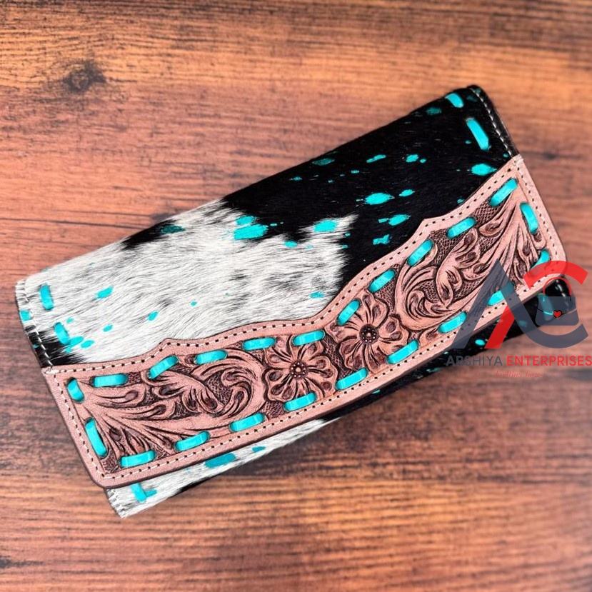 Type:Western Hair On Tooled Bi-fold Wallet