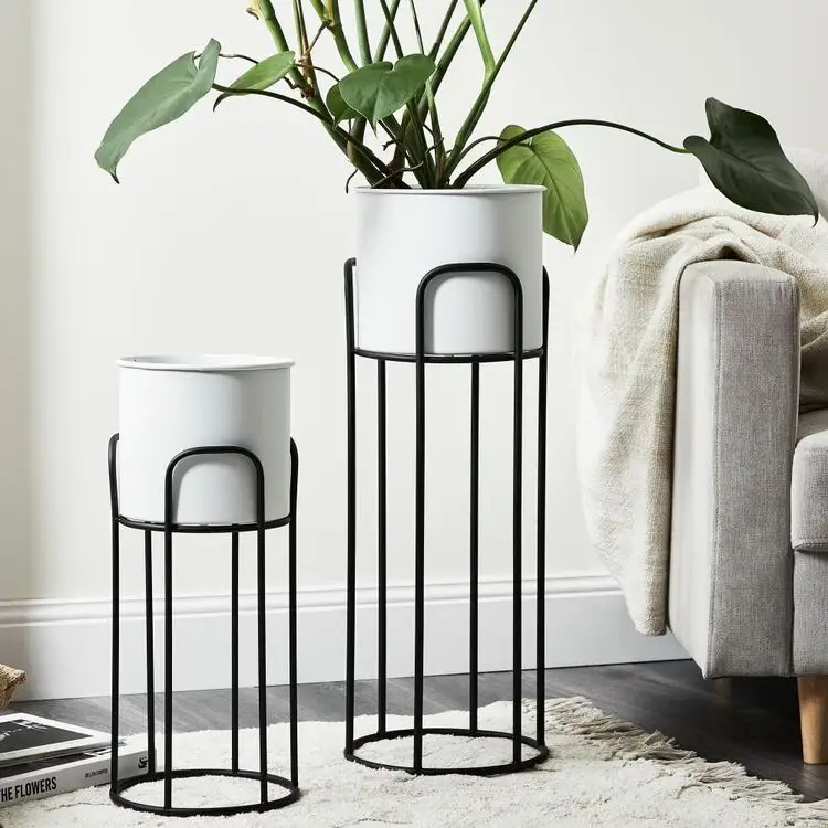 New Design Handcrafted Metal Flower Pots and Planter Custom Design White Finished Metal Planter with Stand