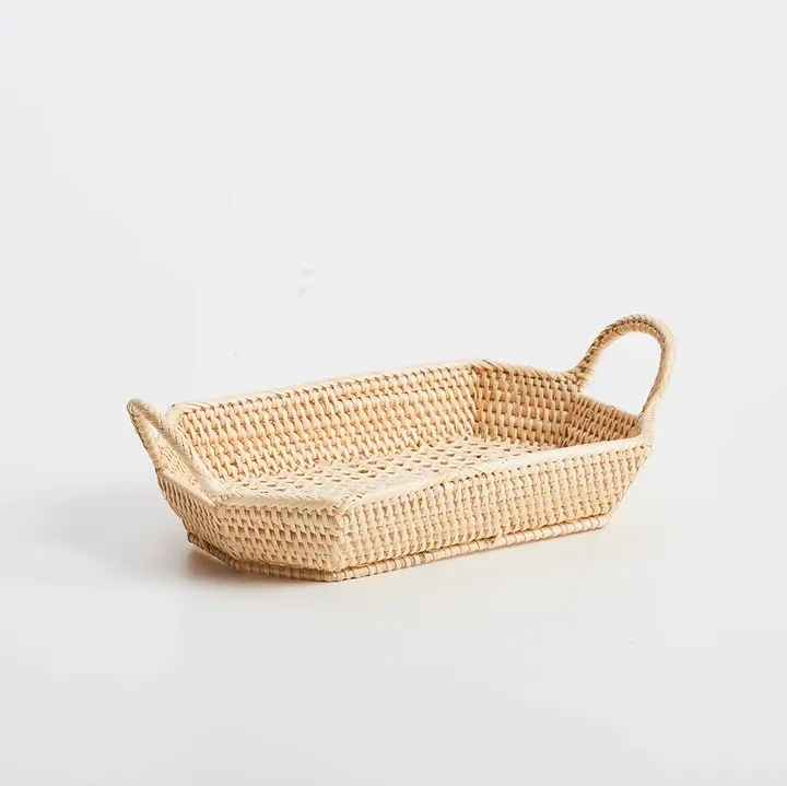 New Design Handcrafted Natural Rattan Basket Trays Wholesale Wicker Charger Plate Serving Trays OEM Handmade From Vietnam