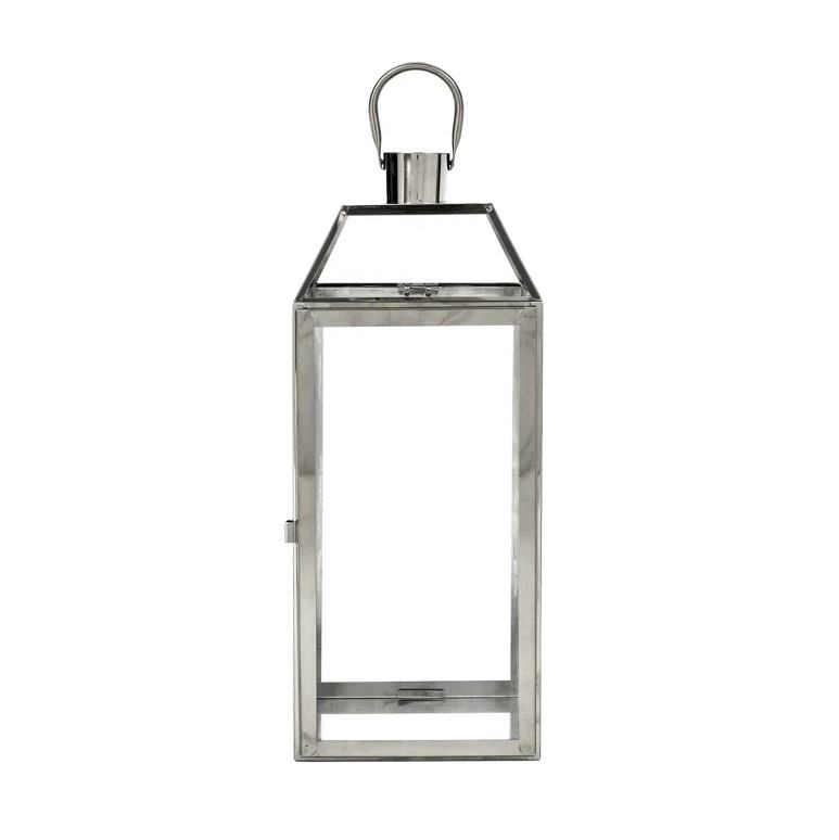 Sleek Stainless Steel Lantern with Clear Glass Panels Modern Candle Holder Ideal for Home Decor Patio and Festive Lighting