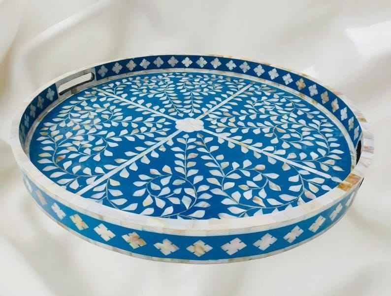 Mother Of Pearl Inlay Handle Ramadan Gift Acrylic Serving Trays With Mop by faizacraft