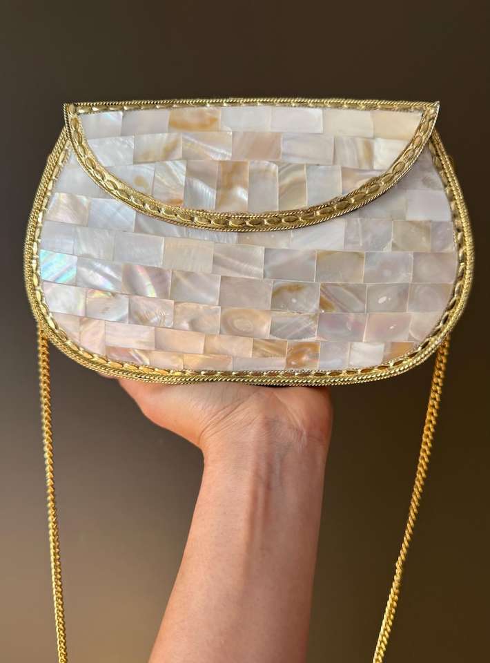 New Design Handmade Mother Of Pearl Beaded Clutch Bag Ladies Evening Handbag For Bridal Events Available At Wholesale Price