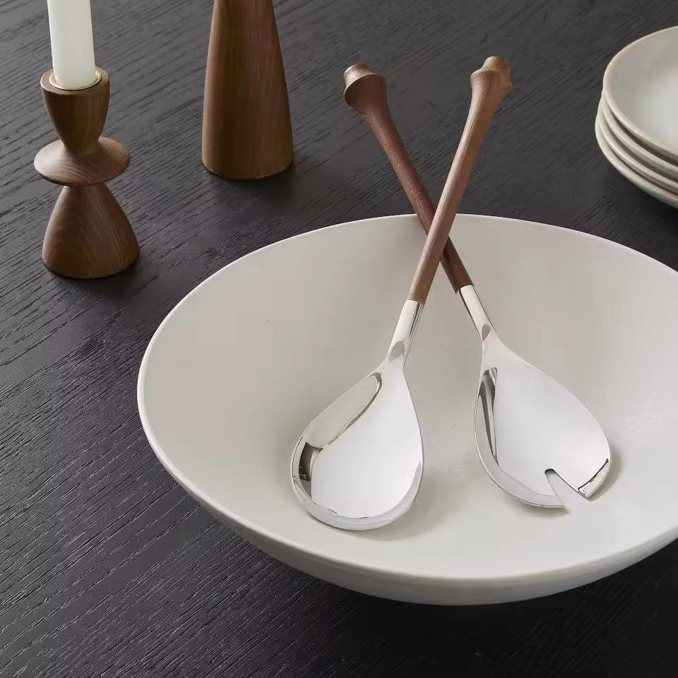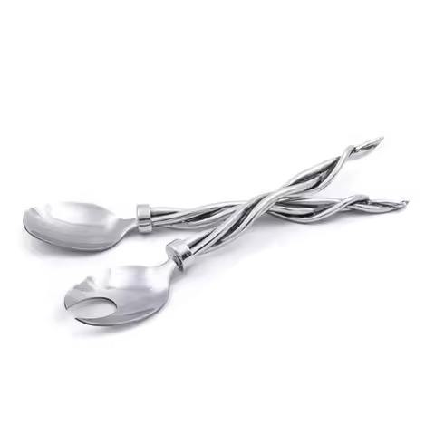 New Design Heart Shaped Handle Flatware Set of 2 Polished Tone Stainless Steel Salad Servers with Spoons and Forks