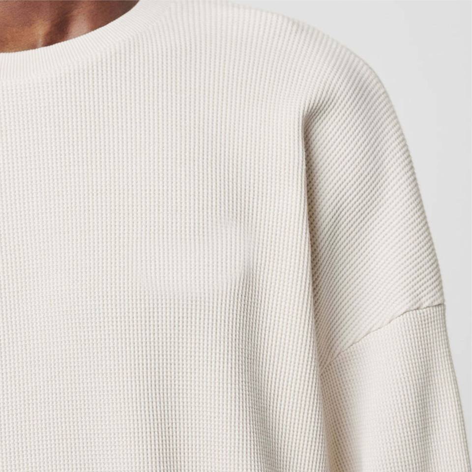 New Design Heavyweight Custom Logo Embroidery Oversized Long Sleeve 340 gsm 100% Cotton Waffle T Shirt