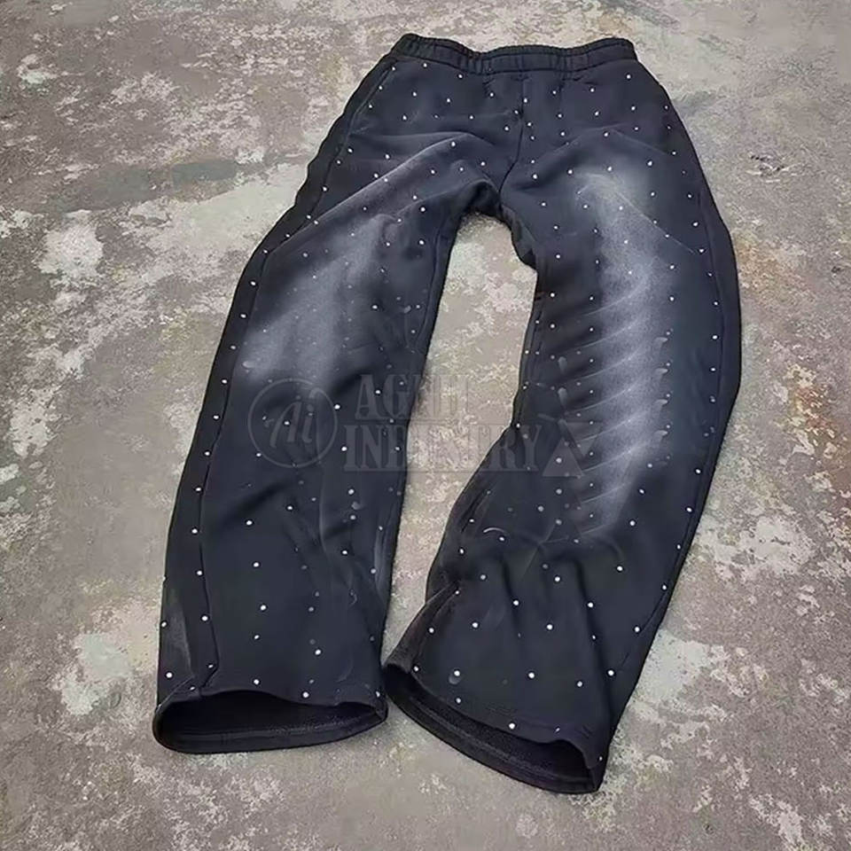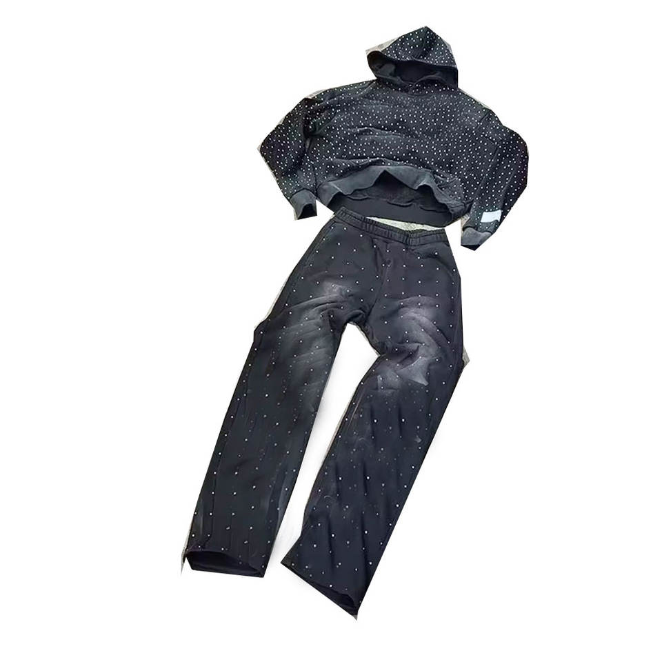 New Design High Quality Hooded Solid Casual Men Rhinestone Tracksuit Fall Winter Wear Breathable 100% Cotton