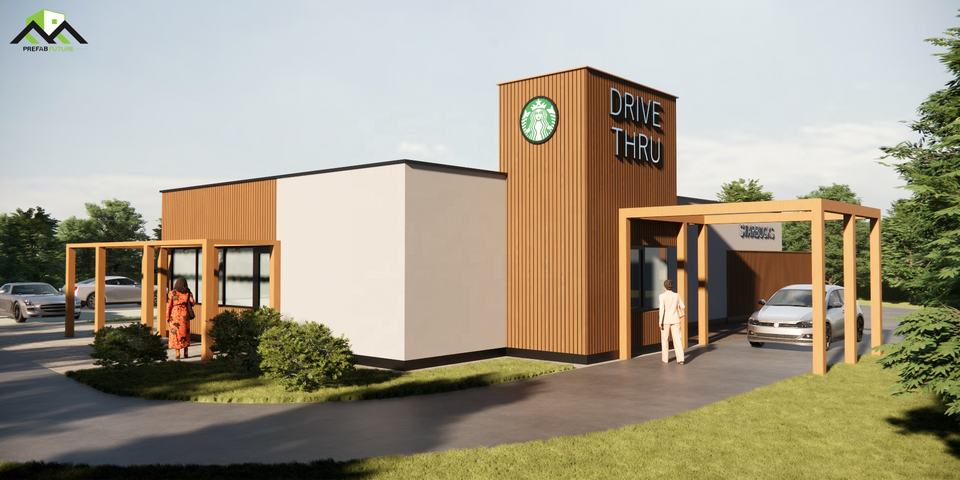 New Design Industrial Prefabricated Steel Structure Drive-thru Coffee Shop Club Office Building & Mall on Sale