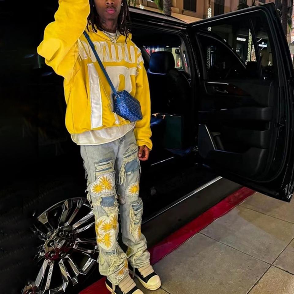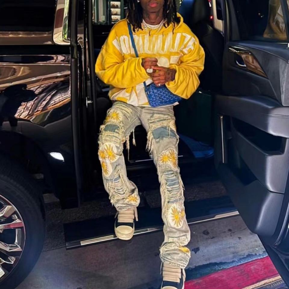 New Design Jeans Ripped Dirty Wash Destroy Ripped Distressed Patch Custom Jeans for Men