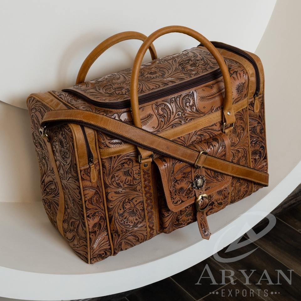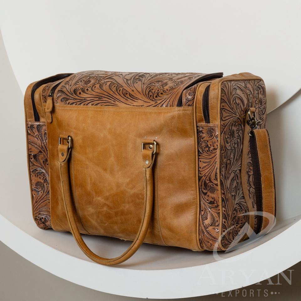 Product Name:Hand Tooled Leather Duffle Bag
