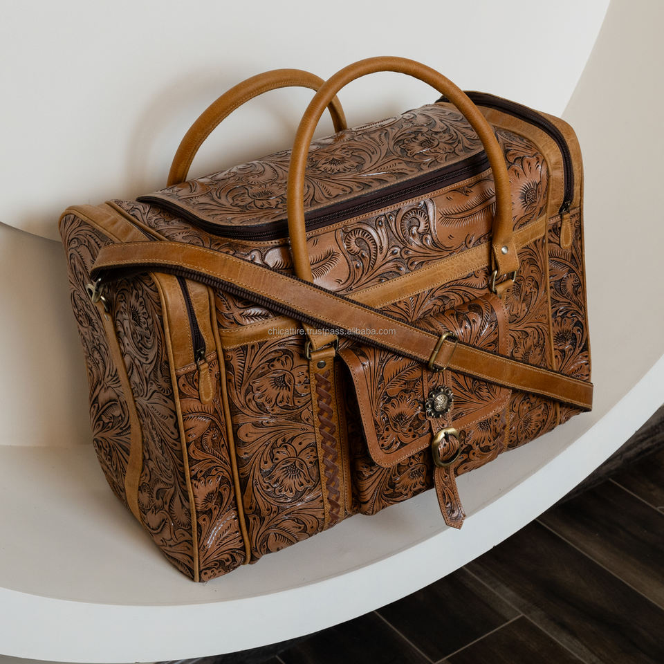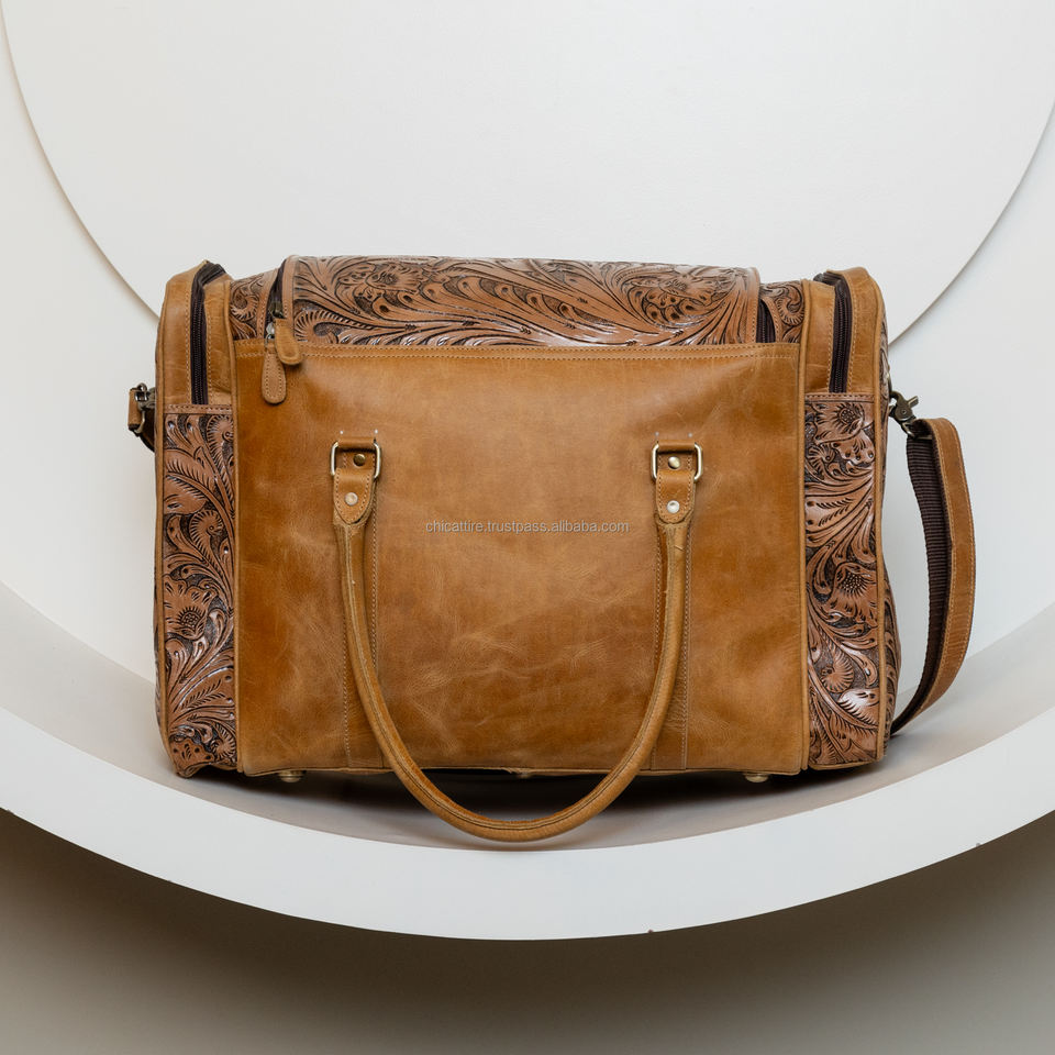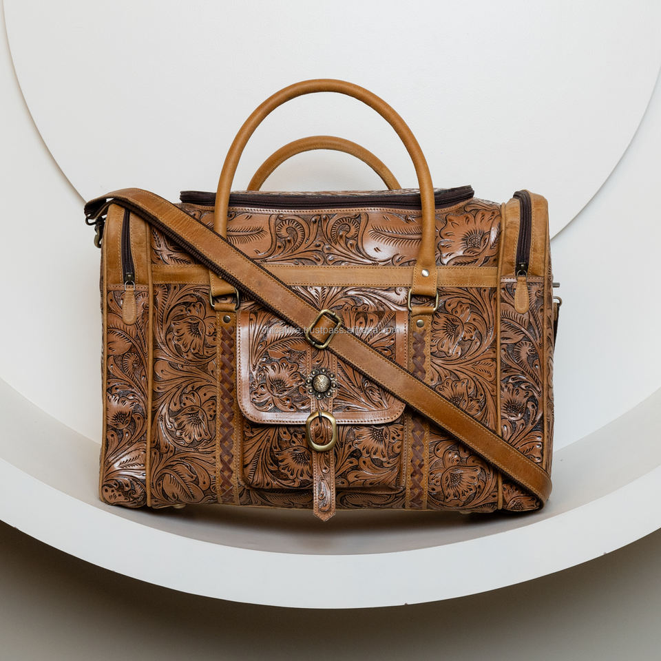 Product name:Hand Tooled Leather Duffle Bag