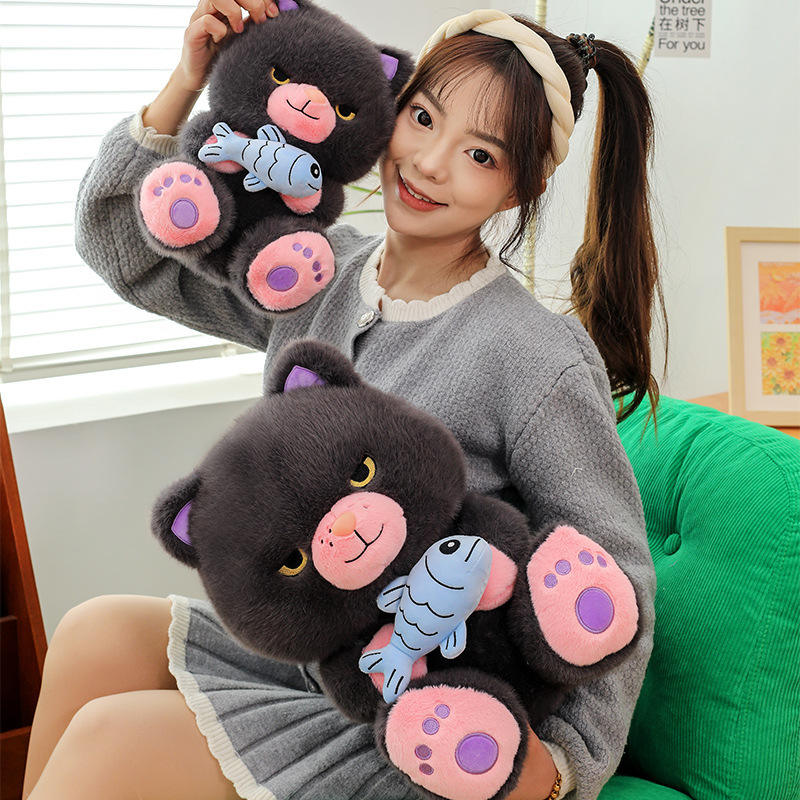 New Design Little Devil Black Cat Fish Holding Plush Doll Children's Pillow Stuffed Animal Toy for Kids Gifts