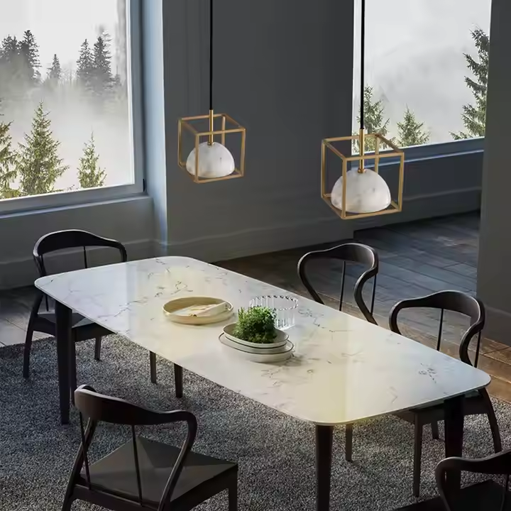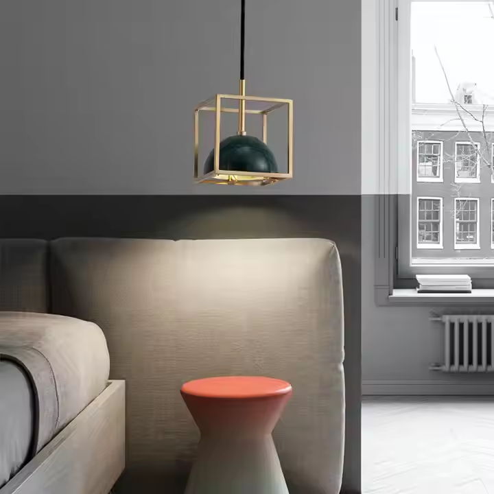 New Design Lobby Gold Copper Green Marble Pattern Ball Ceiling Chandelier Light Pendant Lamp