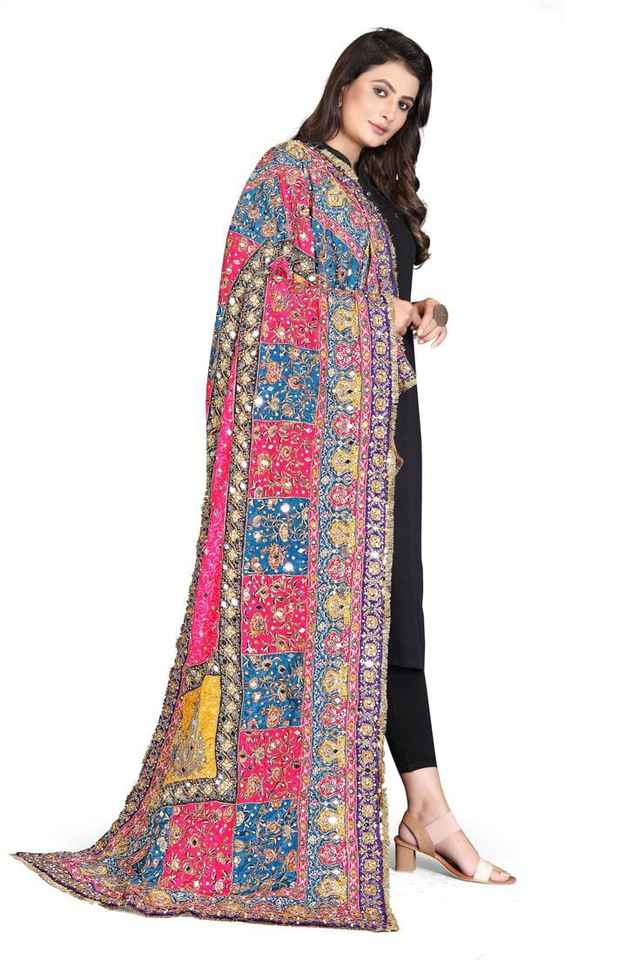 New Design Luxury Indian Banjara Shawls Antique Handmade 100% Silk Heavy Mirror Work Embroidery Women's Ethnic Long All Seasons