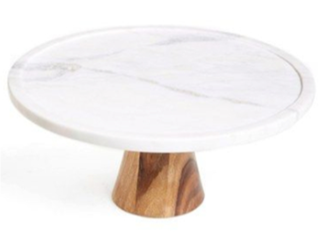 New Design Marble Cake & Fruit Display Stand With Wooden Base Fruit Display Stand for Kitchen Entry Way Decoration Stand