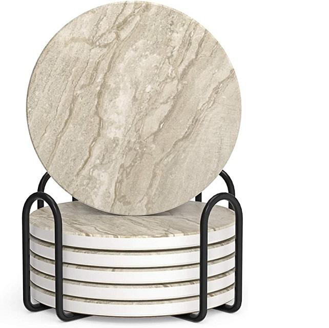 New Design Marble Stone Coaster Set Of 6Pcs With Holder For Kitchen Tea Coffee Cup Table Top Decorative Coaster