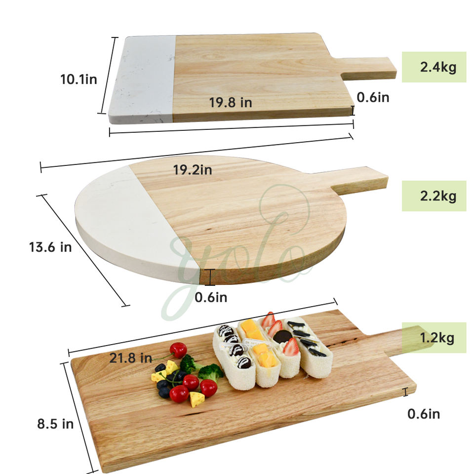 New Design Marble and Acacia Wooden Cheese Serving Board Platter with Handle Exquisite Kitchenware Cutting Board Round