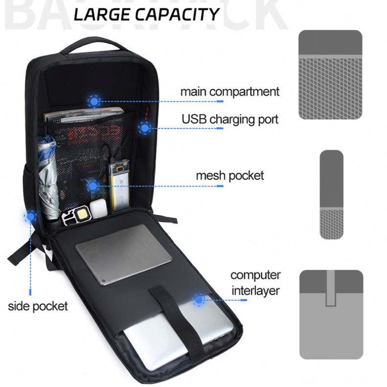 New Design Men's Laptop Backpack USB Smart Feature EVA Hard Shell Black Waterproof Business Travel Bag Mochila Made Oxford