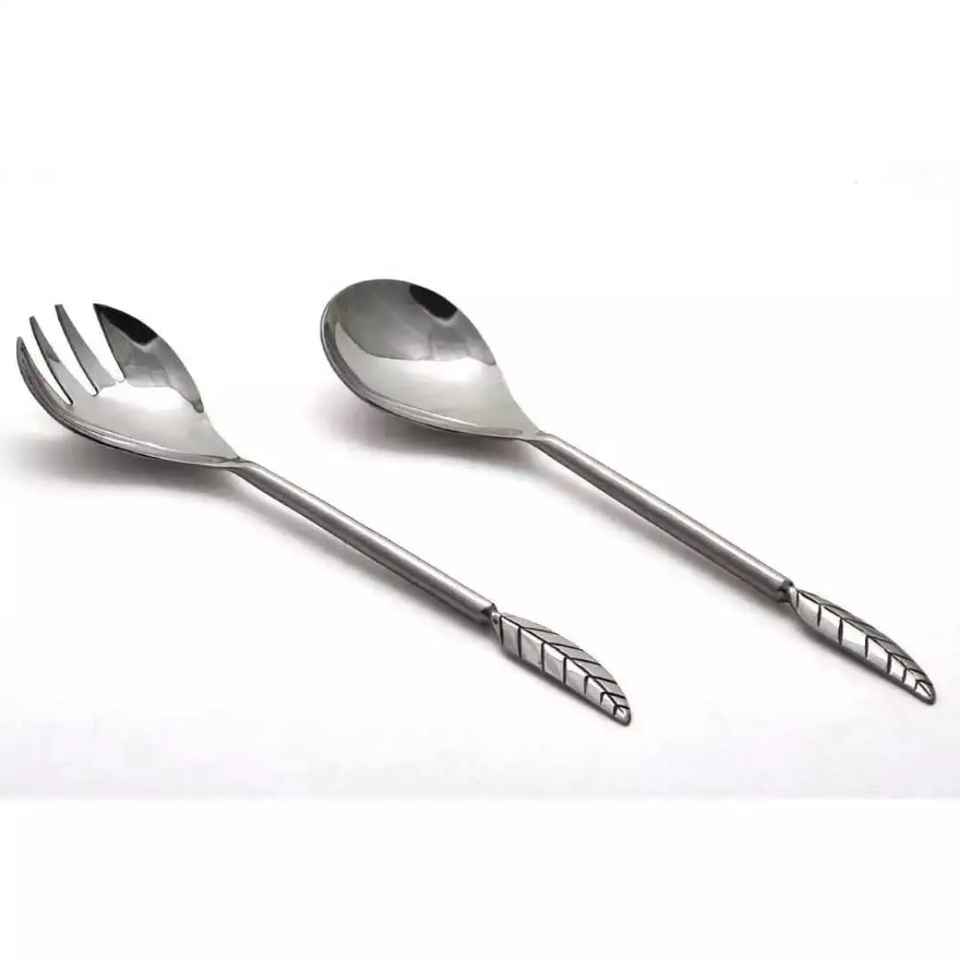 New Design Metal Handle Silver Plated Stainless Steel Salad Server & Serving Spoon for Hotels Homes Restaurants Use