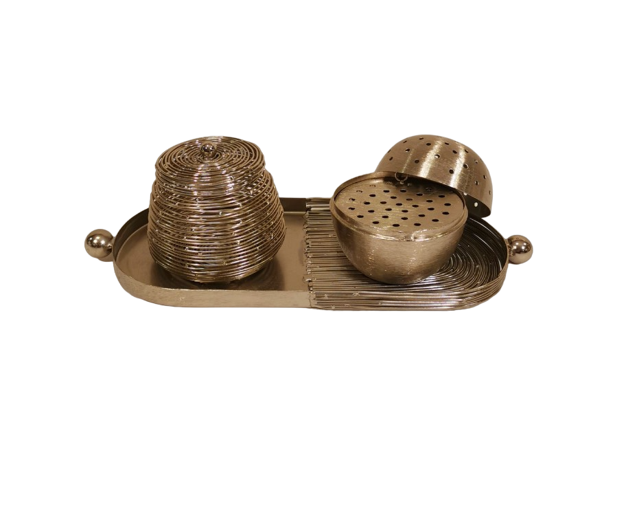 New Design Metal Serve Bowl With Customized Colour Finishing Round Shape Agate Design Premium Quality With Three Compartment