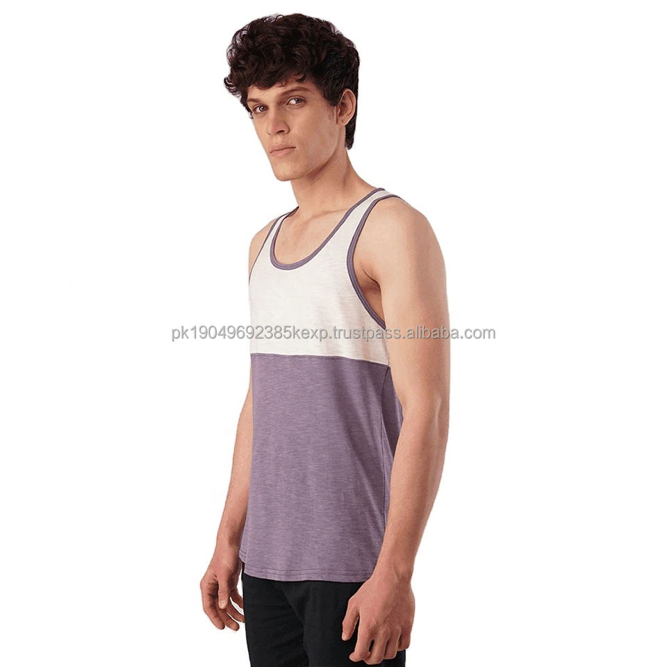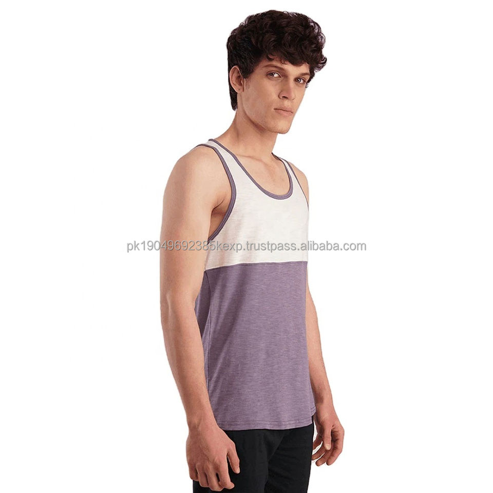 New Design Minimalist Colorblock Tank for Men Light and Dark Purple Split Design Mens Tank Top Perfect for Everyday Streetwear