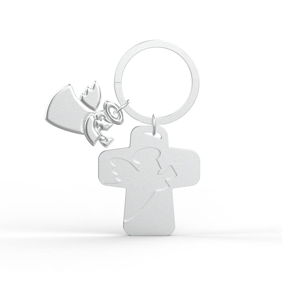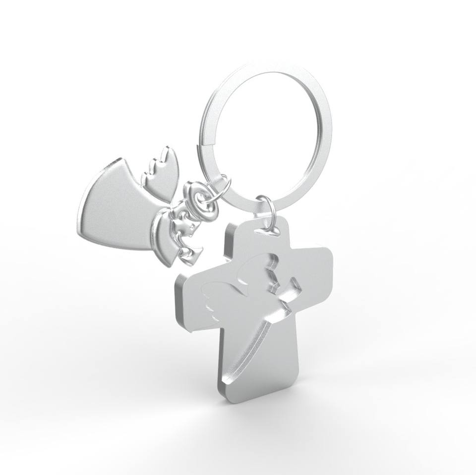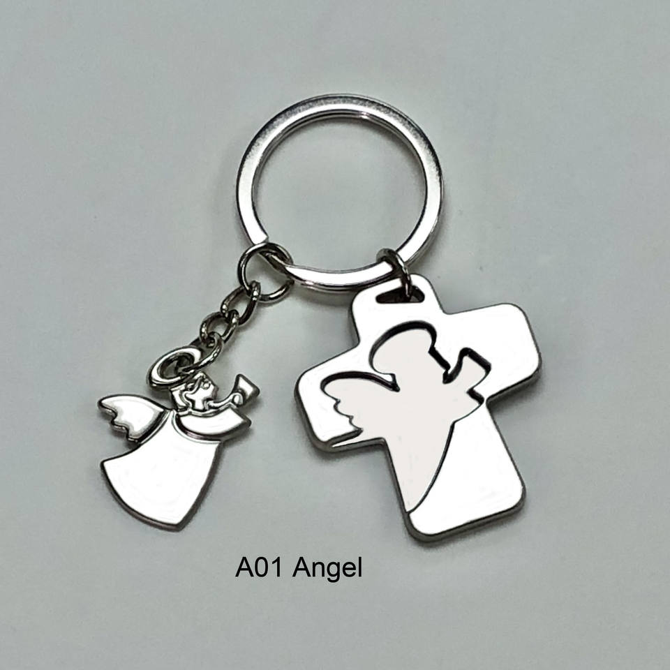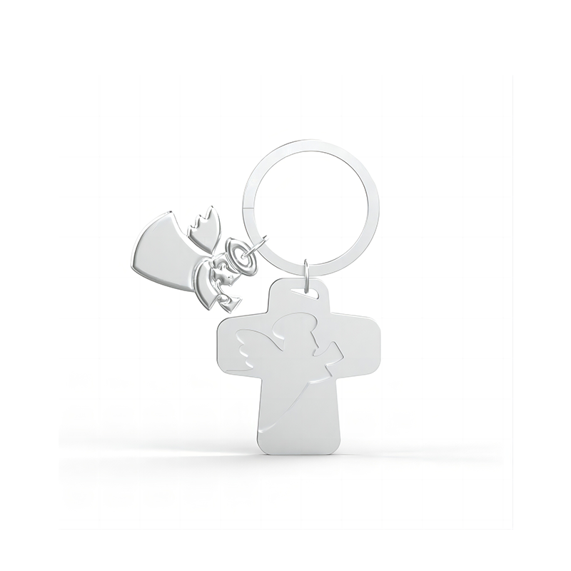 New Design Modern Practical Pearl Silver Cross Angel Shape Keychain Buckle Metal Crafts Keyholder for Car