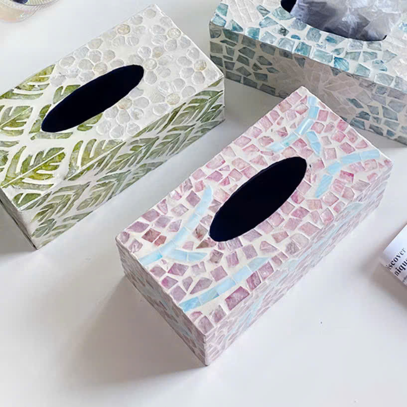 New Design Mother of Pearl Wood Tissue Box Lowest Price Small MOP Boxes for Napkin Paper Holder