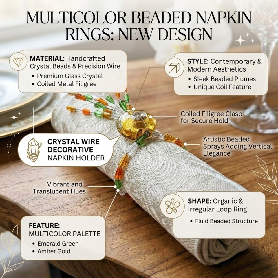 Multicolor Beaded Napkin Rings New Design | Crystal Wire Decorative Napkin Holder | Unique Wedding Party Dining Table Decor